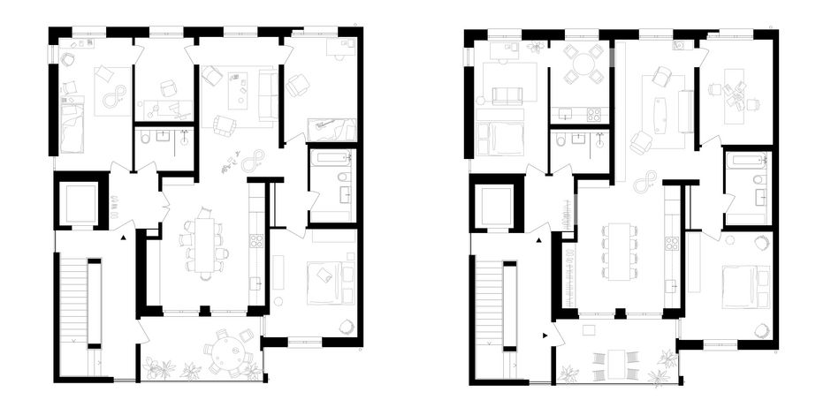 Auf dem ehemaligen Industrieareal Lysbüchel Süd entsteht ein neues Wohnquartier. Die gewachsene Blockrandstruktur der Stadt trifft hier auf grossmassstäbliche Solitärbauten des 20. Jahrhunderts. Die Parzelle nimmt im Kontext der historischen Strukturen eine Sonderstellung ein. Einerseits bildet sie das letzte Glied einer Kette von fünfgeschossigen Wohnbauten, andererseits leitet sie zur grossmassstäblichen Bebauung des benachbarten Industrieareals über. Das offene Treppenhaus mit Liftschacht verbindet alle Wohnungen und Balkone mit dem gemeinschaftlichen Garten und der Dachterrasse. Die Geschosswohnungen können bei Bedarf in zwei separate Einheiten unterteilt werden, um der nachhaltigen Flächennutzung gerecht zu werden.