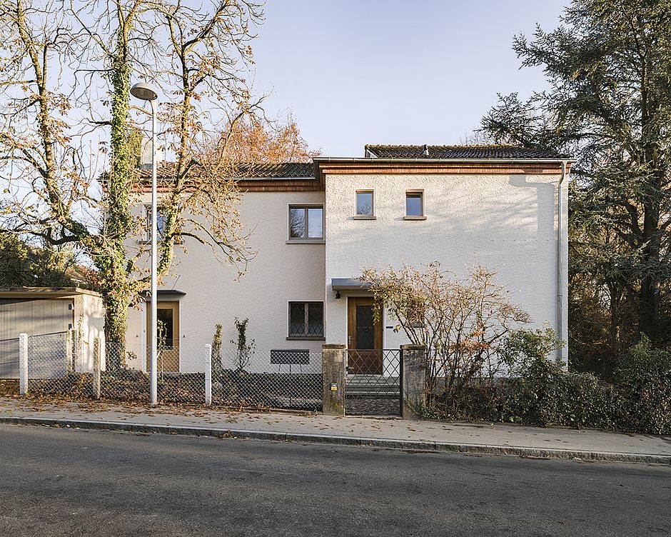 Das auf den ersten Blick unspektakulär wirkende Haus aus den 1920er-Jahren steht in einem üppig bewachsenen Grundstück in einem Villenquartier in Bern. Die Bauherrschaft wünschte sich, das Haus in zwei separate Wohneinheiten aufzuteilen und die Wohnfläche zu vergrössern.