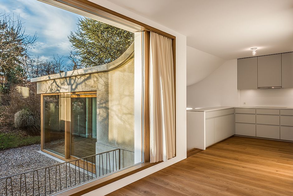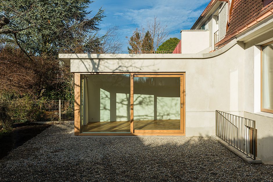Das Grundstück des 1926 erbauten Doppeleinfamilienhauses an der Schäferstrasse in Riehen spannt im Westen einen unerwartet langen und schmalen Garten auf. Durch die Neuformulierung des Erdgeschosses und der gartenseitigen Erweiterung erhält das Haus eine neue Ausrichtung. Mit dem neu geschaffenen Blick in die Tiefe des Gartens wird dieser wichtiger Bestandteil der Atmosphäre im Haus.